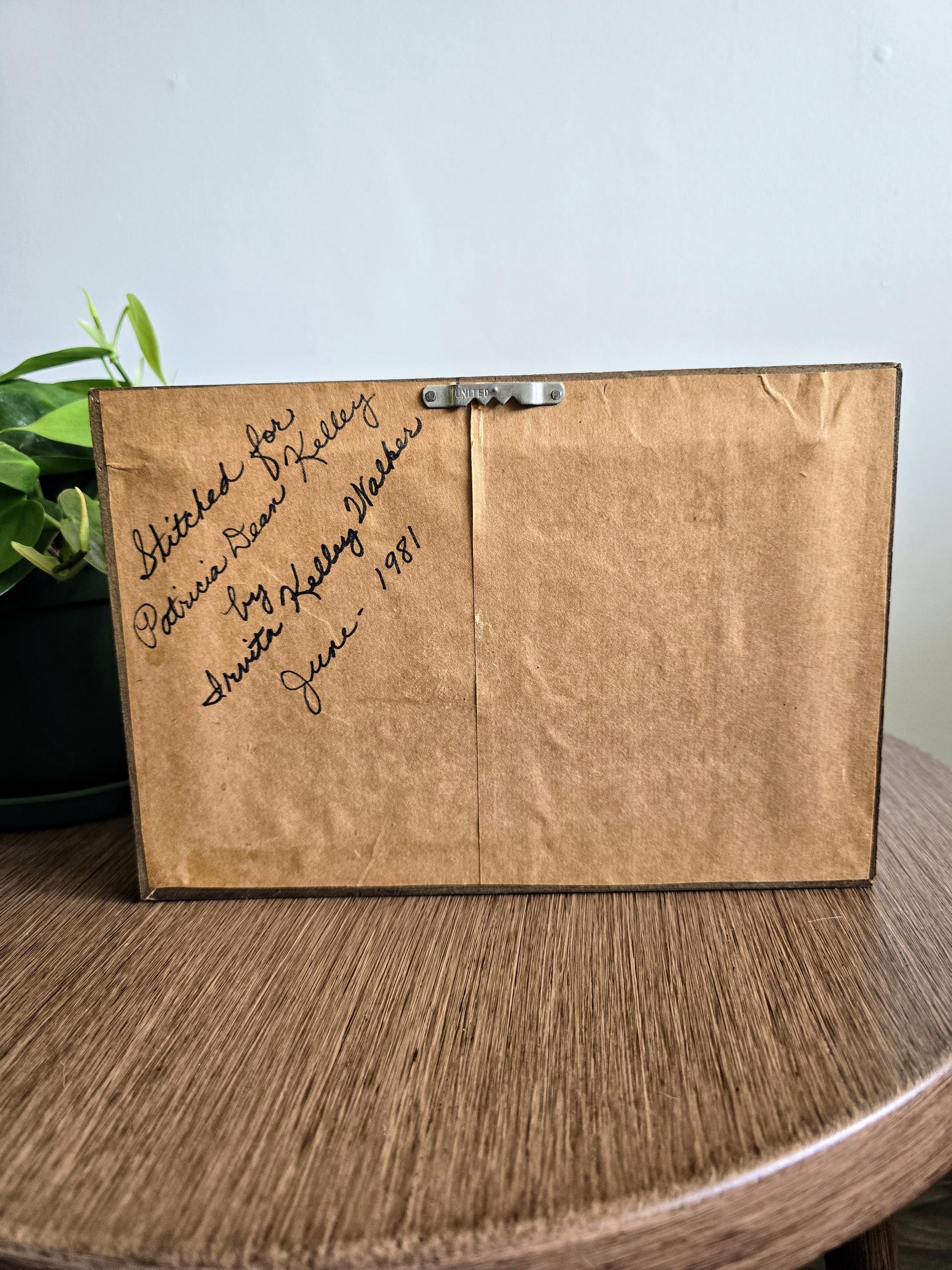 Back: Handwritten dedication: "Stitched for Patricia Jean Kelley by Kelley Wacker – June 1981"